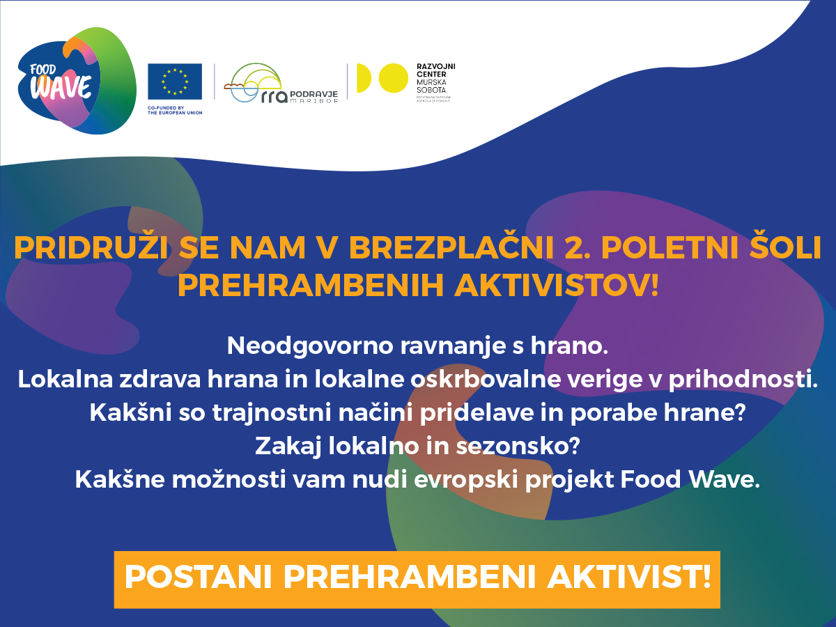 Razvojni center Murska Sobota v sodelovanju z Regionalno razvojno agencijo za Podravje - Maribor, ki je del konzorcija Food Wave, med 2. in 23. junijem 2022 organizira brezplačno 2. poletno šolo.