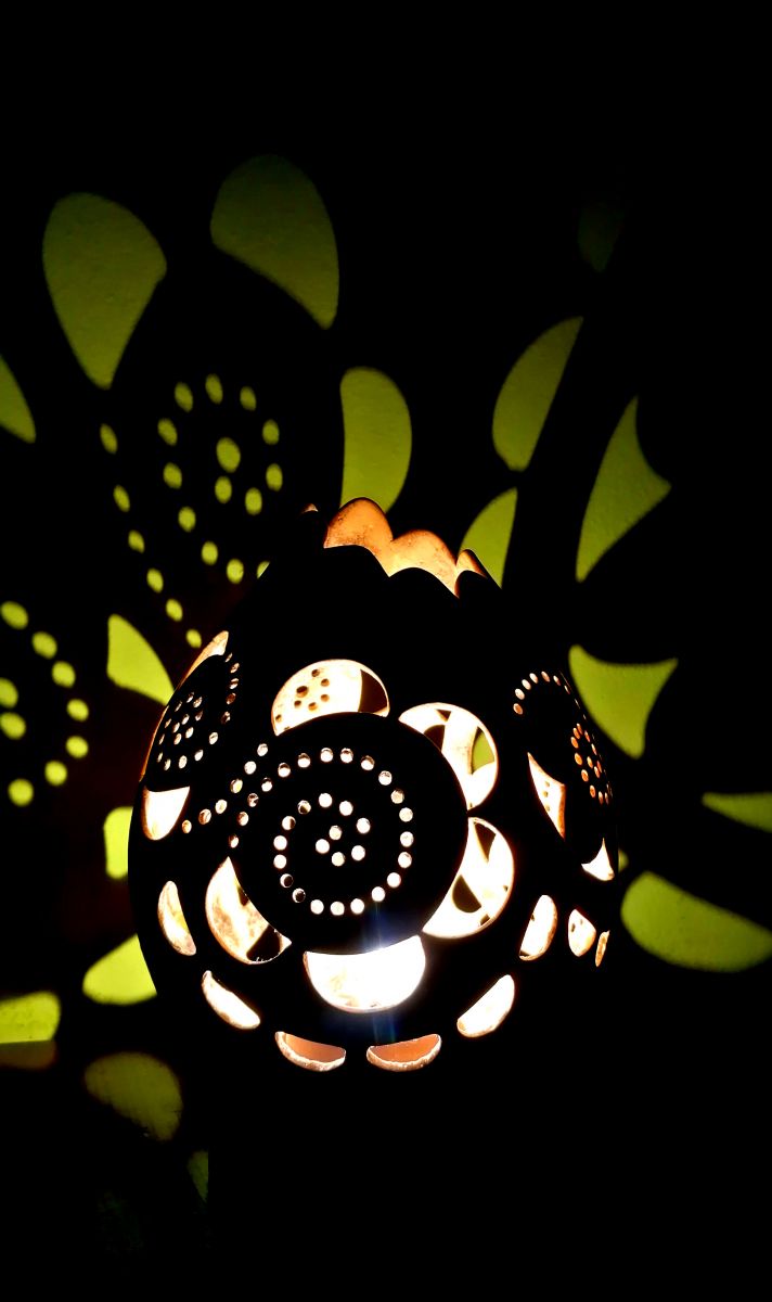 Skozi raziskovanja novih materialov in tehnik oblikovanja ter ustvarjanja, sem prišla do precej zanimivega in drugačnega materiala. To so okrasne bučke. Ideja se mi je zdela krasna, saj so me bučke navdušile že po obliki, predvsem pa to, da se že same po sebi predstavljajo kot unikati. Vedno bolj sem se začela poglabljati v idejo in ugotovila, da obstaja veliko različnih poimenovanj, predvsem zanimivo pa je bilo to, da so bučke že nekoč uporabljali v vinogradništu. No, jaz sem v bučkah prepoznala drugačno zgodbo in ji dodala novo uporabno vrednost. Tako zdaj nastajajo unikatne namizne lučke.