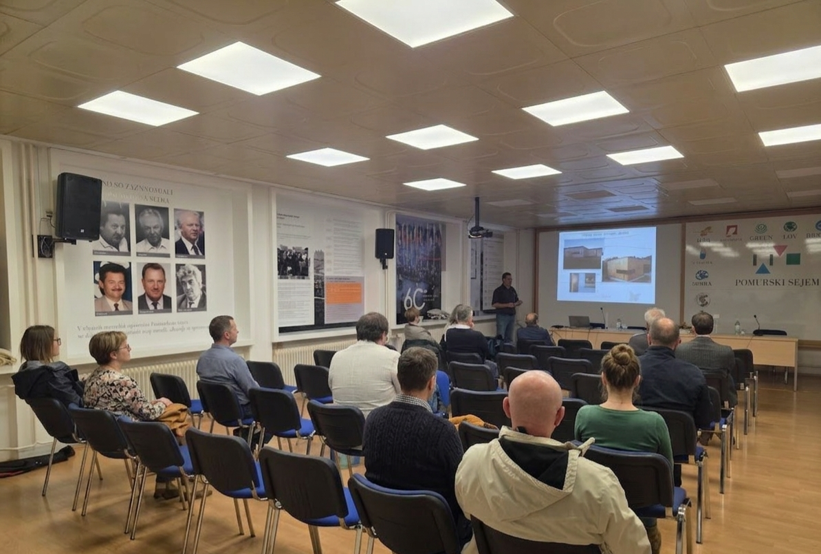Da bi udeleženci lažje razumeli neizkoriščene priložnosti na terenu in vizijo projekta, smo vsebino prve delavnice namenoma zasnovali okoli dveh konkretnih primerov dobre prakse iz Slovenije. Tomaž Činč (Snopje d.o.o.) je predstavil sodobno gradnjo z lesom in slamo, Darko Ipša (IKONS d.o.o.) pa trajnostno obnovo stavbne dediščine. Ta praktična prikaza sta služila kot ključno orodje, da so katalizatorji na dejanskih primerih spoznali, kje v regiji obstaja potencial za nove poslovne modele in kakšne vrste inovativnih rešitev želimo s projektom spodbuditi in podpreti.