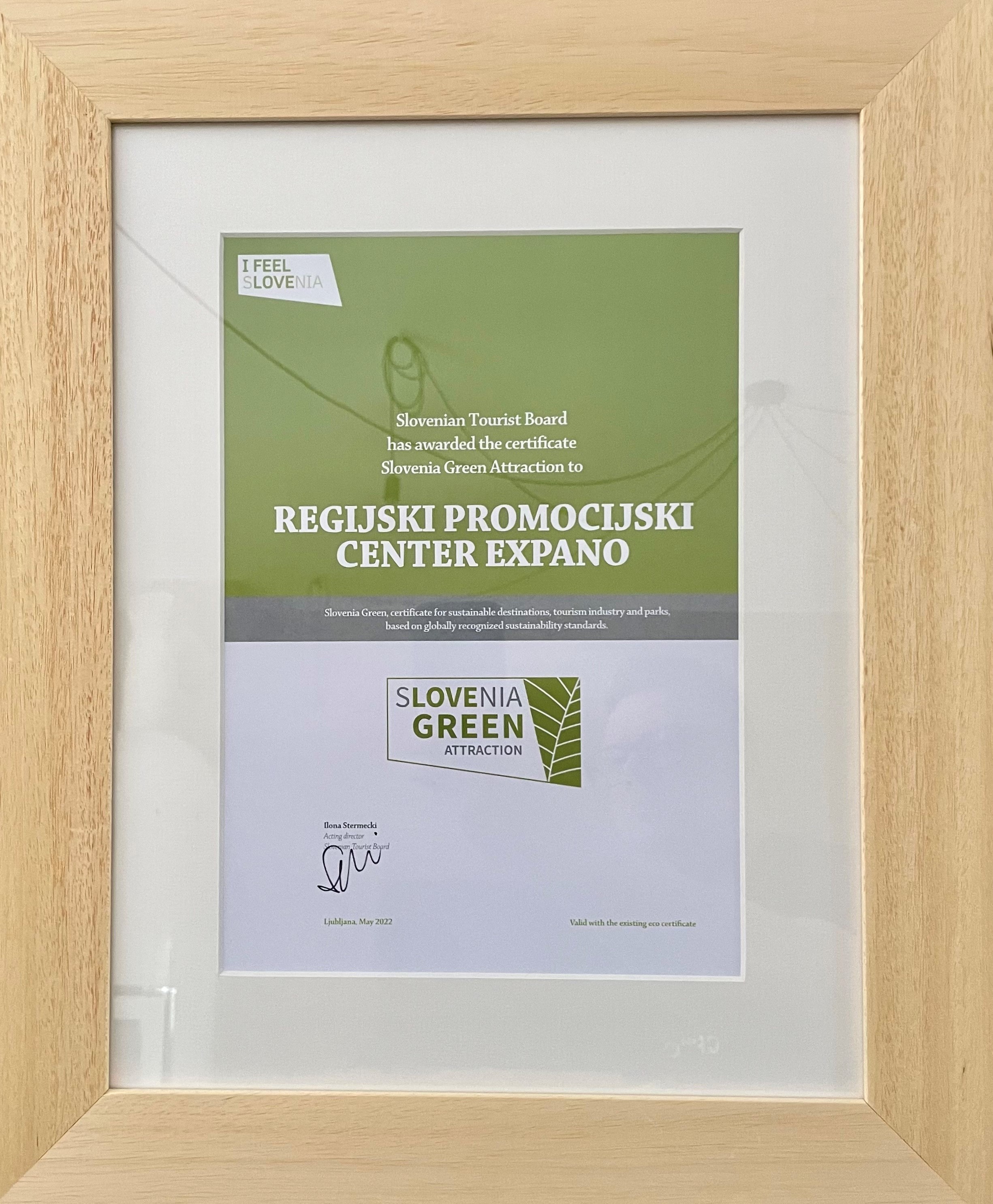 V letošnjem letu je prejemnik znaka Slovenia Green Attraction tudi Regijski promocijski center Expano, ki je tako postal del združenja slovenskih destinacij in turističnih ponudnikov, ki si prizadevajo za trajnostni razvoj turizma. Prav tako pa se bo na domačem, evropskem in globalnem trgu pozicioniral kot okolju in družbi prijazna turistična atrakcija.